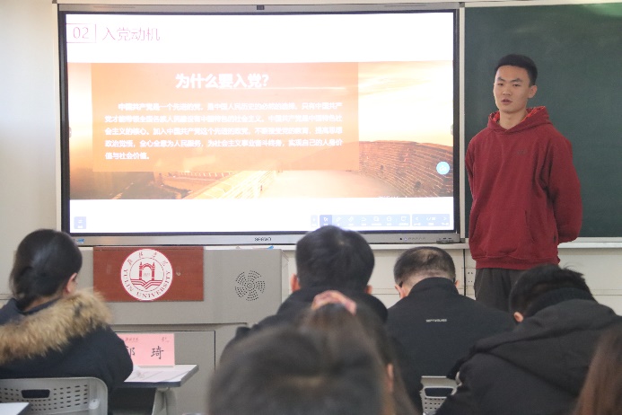 在个人陈述环节,各位拟发展对象从自我介绍、对党的认识、个人表现和未来展望四个方面进行了汇报,积极地表明入党的动机和坚定的立场,用字句诠释自身理想信念,用行动践行服务同学、奉献大家的责任,坚定入党初心,彰显使命担当。