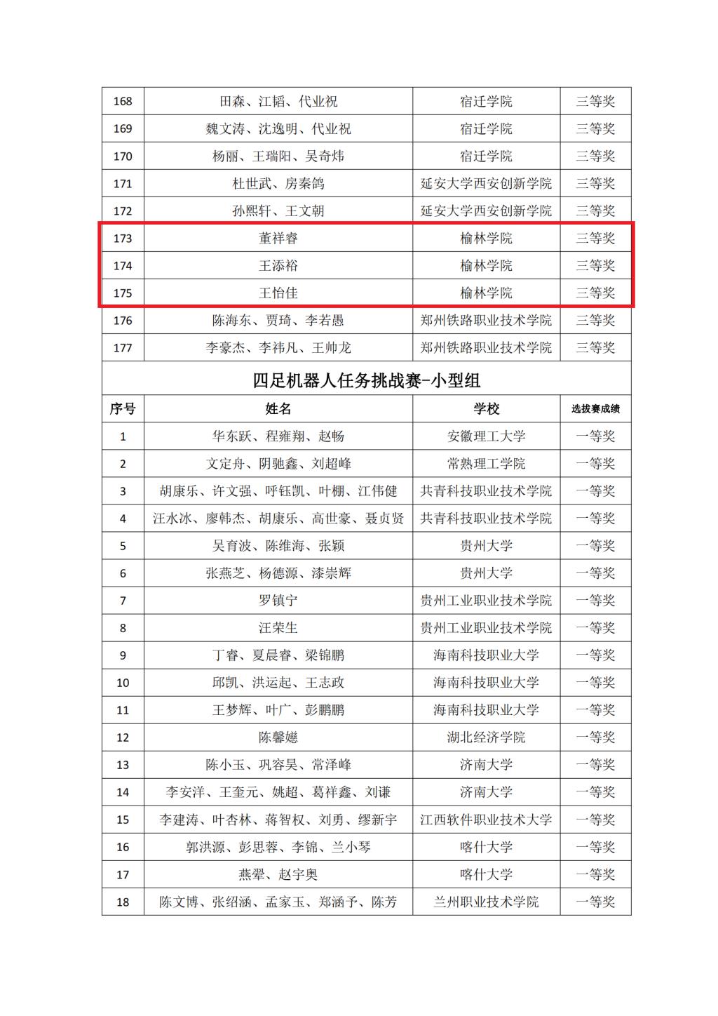 由太阳成tyc234cc张峰、冯治东、田建学等多位教师指导参赛的9支队伍成功进入榜单,分别获得中国赛区选拔赛四足机器人任务挑战赛-中型组、四足机器人任务挑战赛-小型组两个赛项的一等奖2项、二等奖5项、三等奖3项。总决赛将于2023年11月27~30日在杭州职业技术学院举办。