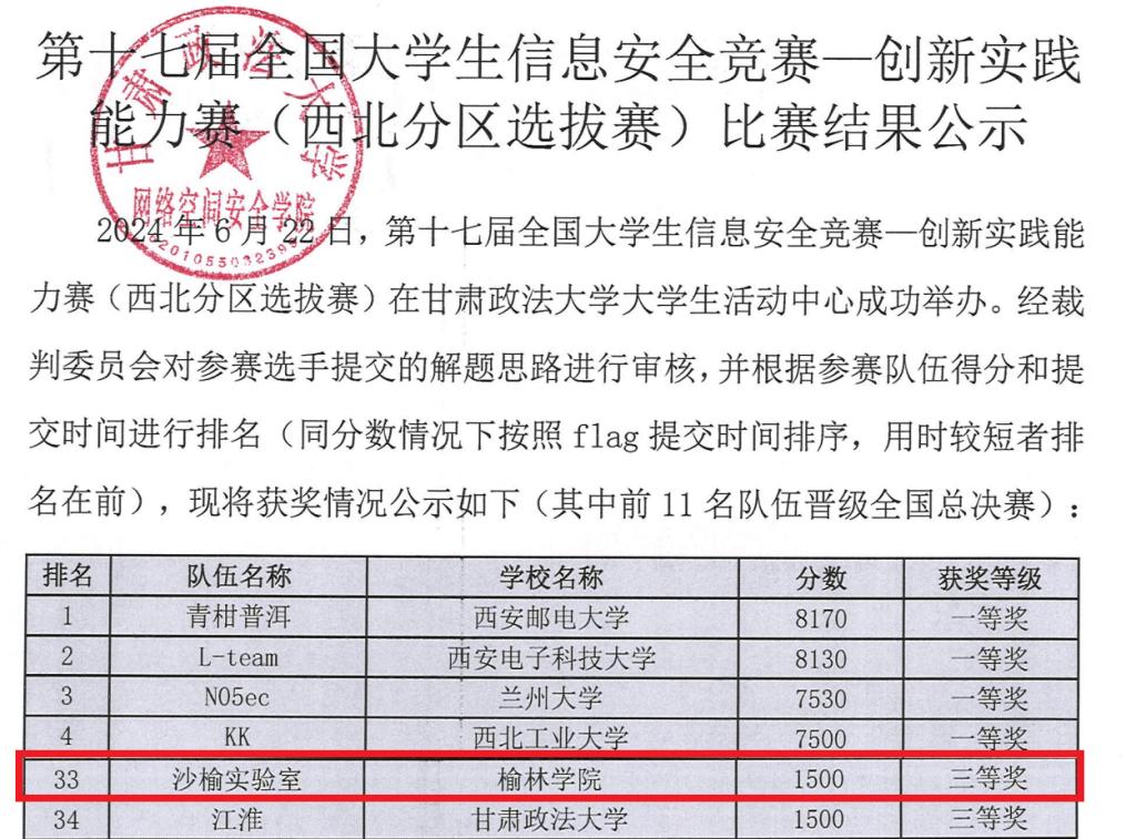 2024年6月22日,第十七届全国大学生信息安全竞赛—创新实践能力赛(西北分区选拔赛)在甘肃政法大学大学生活动中心成功举办。该项赛事入选《全国普通高校大学生竞赛目录》,是信息安全领域最具权威性的赛事之一。此次大赛由教育部高等学校网络空间安全专业教学指导委员会指导、中国互联网发展基金会网络安全专项基金资助、甘肃政法大学承办、甘肃省网络空间安全创新人才培养基地与兰州市网络安全宣传教育基地协办、中网信安科技有限公司提供平台技术支撑与保障,来自西北五省包括兰州大学、西北工业大学、西安电子科技大学等高校的610支队伍经过初赛选拔,最终59支战队入围本次西北赛区赛。