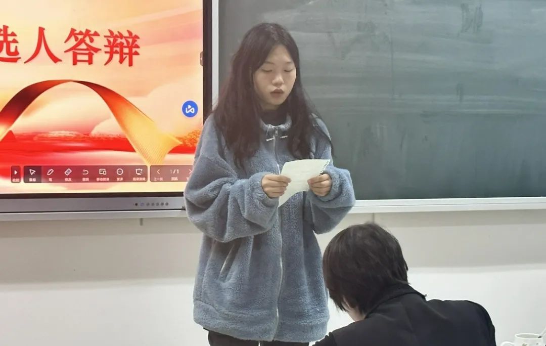 答辩环节,根据评选要求,同学们从学习、实践和家庭等方面进行了汇报。
