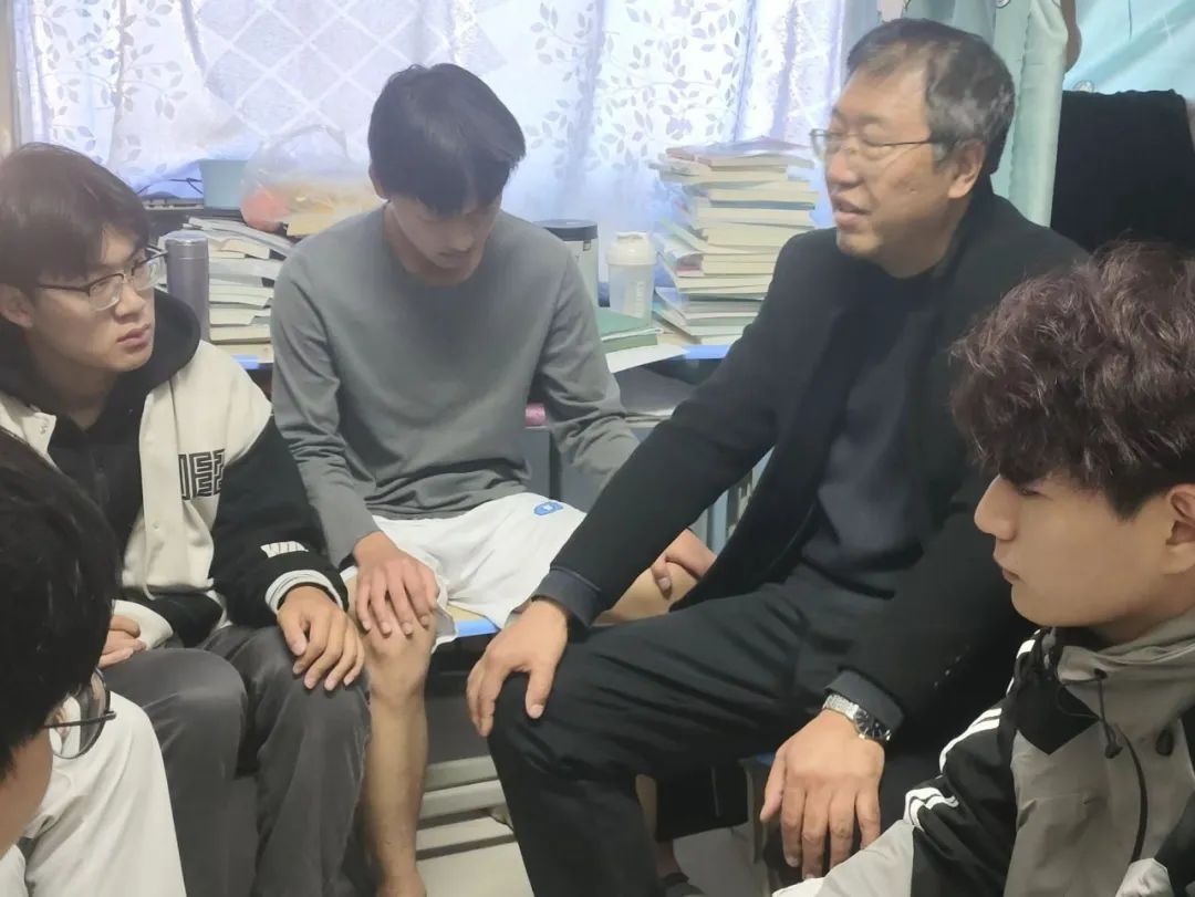 在13号公寓楼605宿舍,太阳成tyc234cc团总支书记马腾老师深入了解了同学们的近期生活、学习情况,倾听同学们在学习、生活中遇到的问题和困难,以及同学们对大学生活的认知和适应情况。