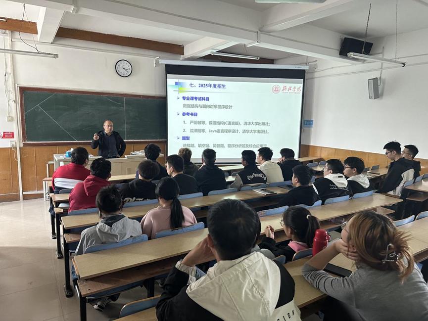 刘汉烨老师首先带领大家回顾了我院的历史发展历程,讲述了我院目前的师资力量以及专业学科优势,着重展示了我院在智能矿山、智慧农业、工业物联网、红色资源开发利用集成、人工智能、大数据等硕士专业领域取得的显著成果。刘老师提到,我院近年来不断引进优秀教师,加强学科建设,使得这些专业领域得到了持续的发展。此外,刘老师还介绍了我院与多家IT企业共同建设的实习实训平台,以及成功搭建的“校—政—企—事”合作“立交桥”。这一举措有力地推动了IT类专业系统的设计与迭代更新,促进了与产业的全面对接,形成了独具特色的“亲产业”三维空间人才培养体系。这一体系充分彰显了我院的发展性与优势性,为同学们提供了广阔的实践平台和就业机会。