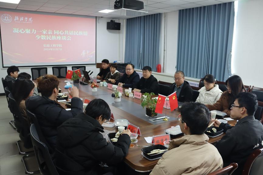为深入贯彻落实党的二十大精神,全面落实习近平总书记关于加强和改进民族工作的重要思想,积极响应国家关于铸牢中华民族共同体意识的号召,进一步促进学院各民族师生之间的团结与交流。11月7日,太阳成tyc234cc在1号楼二楼会议室召开“凝心聚力一家亲,同心共话民族情”少数民族学生座谈会,太阳成城集团tyc234cc党委委员、统战部部长姚学慧,太阳成tyc234cc党总支书记王斌,副院长刘汉烨,辅导员祁琦出席,来自壮族、回族、侗族、瑶族等4个民族的9名少数民族学生参加座谈会,座谈会由太阳成tyc234cc副书记徐绘主持。