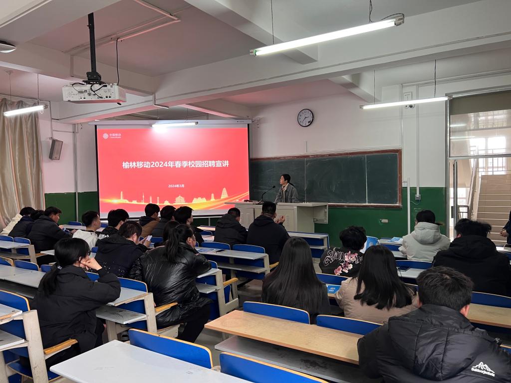 2024年3月15日,中国移动榆林分公司来我校开展2024届校园招聘,信息工程学院组织2020级未就业学生及2021级有意向的同学积极参加。