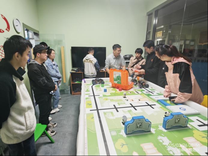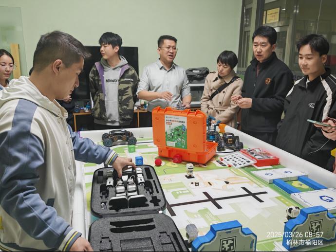 在陕西亿科教育科技有限公司经理刘波的陪同下,学院师生一行参观了超能实验室的科教平台及创新成果展示区。刘波经理在参观过程中介绍了解超能实验室目前开展的主要业务,公司拥有的人形机器人的智能化水平、3D打印机的应用情况、多功能小车的开发应用水平,以及模块化物联网平台在榆林中小学第二课堂中的课程开设情况。特别是陕西亿科教育科技当前对信息化人才的迫切需求、以及与学院深度合作的强烈愿望。随后,徐绘副书记详细介绍了信息工程学院的专业设置、学科特色、人才培养模式、及近年来就业情况。特别是人工智能产业学院通过微专业、企业全过程深度参与、双导师制等创新型人才培养方式和学院领导顺应人工智能时代制定的新协助引领发展计划,获得了良好的社会效应和用人单位的好评。最后,希望我院与陕西亿科教育科技建立长期稳定的合作关系,共同探索“政产学研用”多维度协同育人新路径。