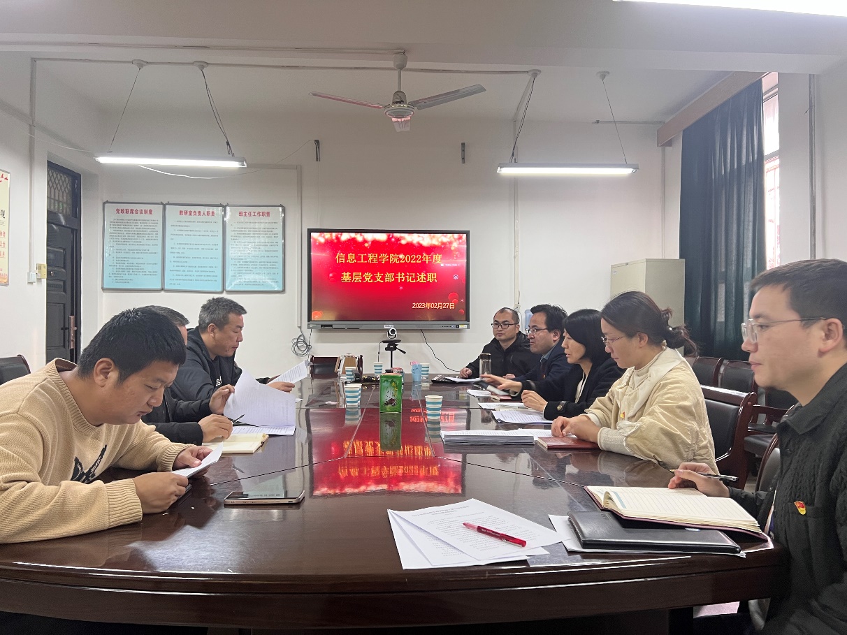 2023年2月27日下午,太阳成tyc234cc党总支召开2022年度党支部书记抓党建工作述职评议大会。太阳成tyc234cc党总支委员、各师生党支部书记参加会议。会议由太阳成tyc234cc党总支书记张烨主持。