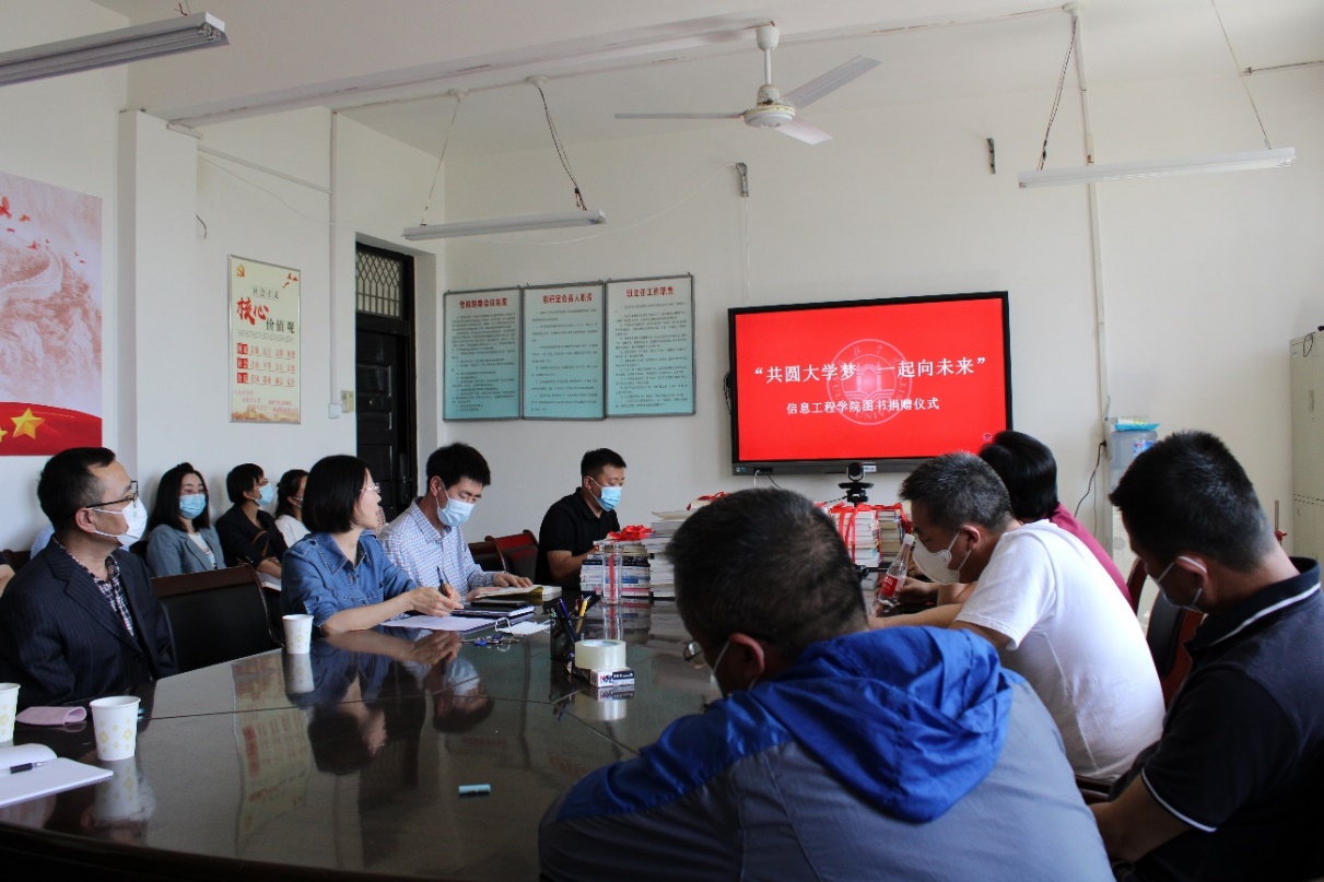 2022年5月5日下午,我院在二楼会议室召开“阅读新时代 奋进新征程”——书香致远 信工远航读书分享会暨“共圆大学梦 一起向未来”图书捐赠仪式,太阳成城集团tyc234cc图书馆馆长刘满平、太阳成tyc234cc全体领导班子、教职员工及图书馆部分工作人员参加会议。会议由太阳成tyc234cc党总支书记张烨主持。