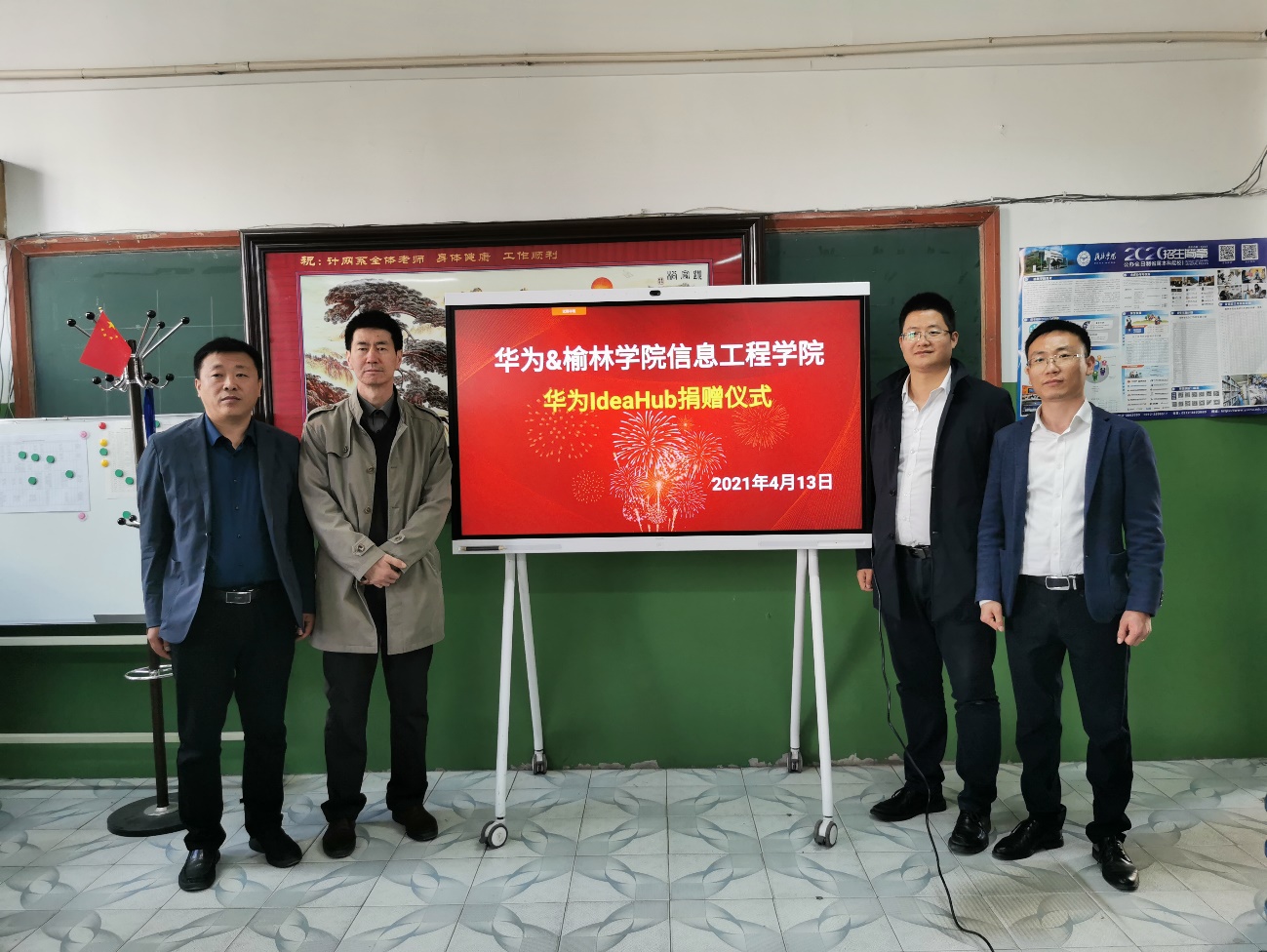 2021年4月13日下午,华为技术有限公司滕鹏飞代表企业向太阳成tyc234cc捐赠华为IdeaHub。太阳成tyc234cc院长李红卫、副院长封蕾出席捐赠仪式。