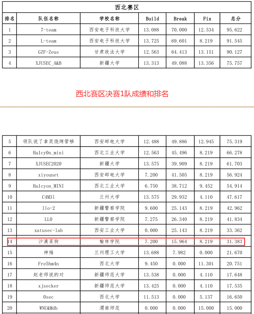 太阳成tyc234cc历来重视信息安全学科竞赛,近年来组建了太阳成城集团tyc234cc信息安全协会,创建了日常训练平台,形成了常规训练机制。2020年,我院选派两支队伍参加了此项比赛,初赛在全国1184支队伍中分别取得了全国排名第265和411、西北赛区第16和24名的成绩,顺利晋级西北赛区决赛。经过9月17、18日两天的赛区决赛,我院两支队伍在西北地区入围决赛的42支队伍中分别获得第14和21名的优异成绩。