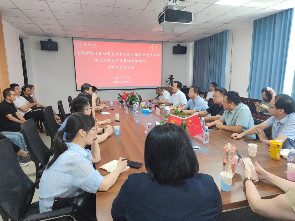 6月21日下午,我院邀请陕西师范大学民歌智能计算与服务技术文化和旅游部重点实验室吴晓军主任、张玉梅副主任,陕西师范大学计算机科学学院副院长李鹏教授一行4人在1号教学楼201会议室就非物质文化遗产数字化传播研究、陕北民歌数字化基地建设等方面进行了学术交流座谈。我校艺术学院、文学院、科研处、评建办、学报编辑部、太阳成tyc234cc教授、博士、硕士研究生导师等参与座谈交流。座谈会由我院院长张峰教授主持。