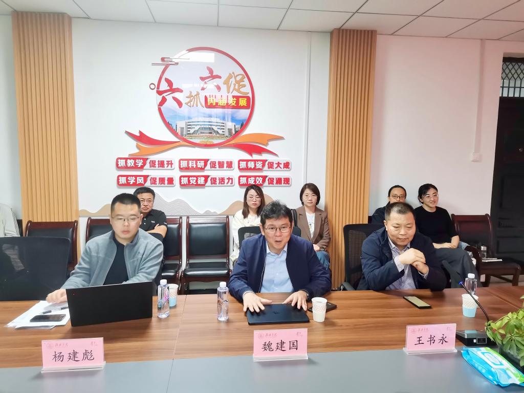 张峰首先代表学院对魏建国教授的莅临指导表示欢迎和感谢,希望我院教师以此次交流为契机,把握形势、积极申报、认真准备,要结合专家建议,精打细磨,认真总结凝练,提高申报书的质量,力争实现我校国家自然科学基金项目和国家教学成果奖新突破。
