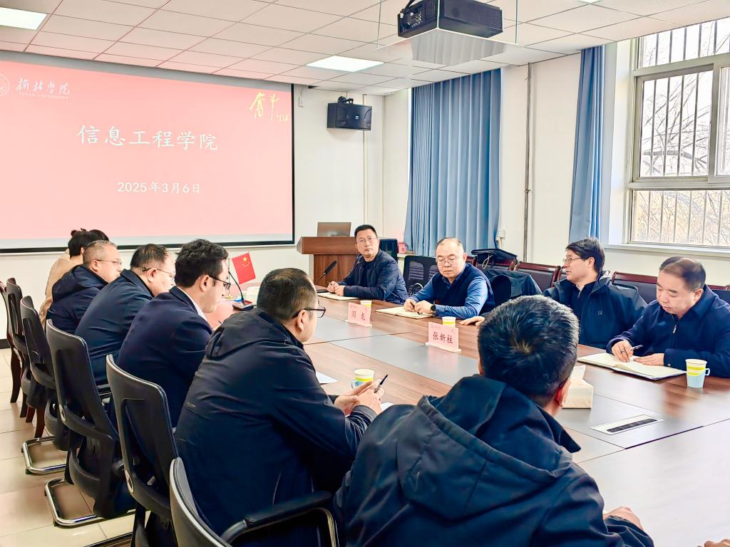 3月6日上午,党委书记张新柱在党委副书记闫龙陪同下,到太阳成tyc234cc调研指导工作。教务处等部门负责同志、太阳成tyc234cc领导班子、博士代表参加了调研会。