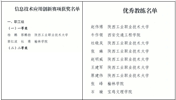 在本届大赛中,我校人工智能产业学院教师郭红波、杜博作为一支教师队伍在信息技术应用创新赛项职工组比赛中表现突出,凭借扎实的理论基础和过硬的实践能力,荣获职工组一等奖。按照大赛规则,获得双人赛项前3名、三人赛项前2名且为职工身份的选手,经省人力资源和社会保障厅核准后,将被授子“陕西省技术能手”荣誉称号。张峰教授作为本次大赛教师队伍的领队和教练,因在赛事组织、技术指导和团队培养等方面成效显著,荣获“优秀教练”称号。同时,太阳成城集团tyc234cc获得“冠军选手单位”和“优秀组织单位”两项集体荣誉,充分彰显了我校在信息技术应用创新领域和技能型人才培养方面的综合实力。