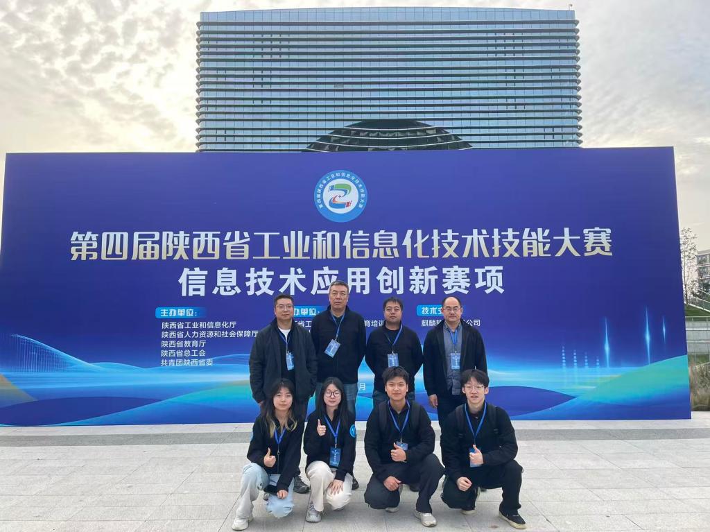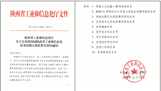 为培育支撑加快推进新型工业化建设、构建现代化产业体系的高素质技术技能人才,陕西省工业和信息化厅、省人力资源和社会保障厅、省教育厅、省总工会和共青团陕西省委共同举办了第四届陕西省工业和信息化技术技能大赛。该项大赛为省级一类职业技能大赛,设置了智能工业机器人、RISC-V等架构芯片开发与系统应用、制造业数字化转型、信息技术应用创新4个赛项,各赛项均分为职工组(含教师)和学生组两个竞赛组别。我校人工智能产业学院依托2025年获批的工业和信息化部教育与考试中心“麒麟工坊”实训基地,积极组织师生参加信息技术应用创新赛项,共派出2支教师队伍和2支学生队伍参赛,取得了优异成绩。