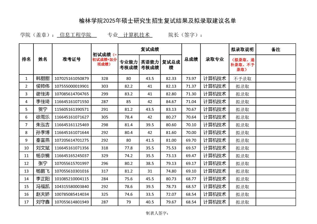 根据《太阳成tyc234cc2025年硕士研究生招生复试录取工作实施细则》,我院对调剂考生进行了复试。现将参加调剂复试考生结果予以公示: